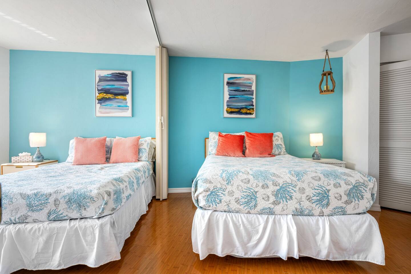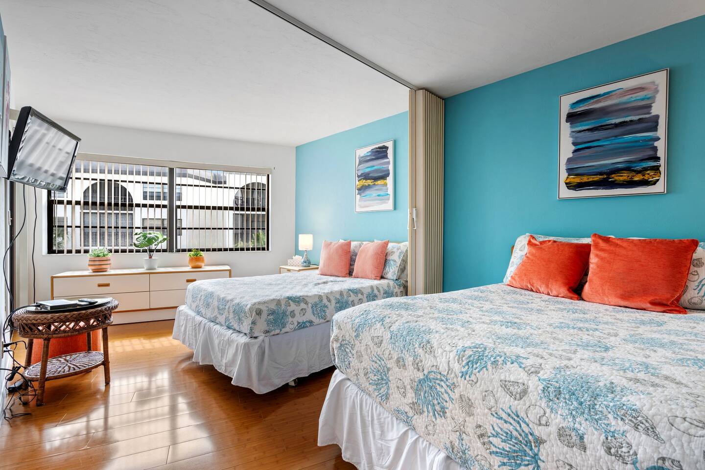 KEY FEATURES: ☀ Condo Amenities - Pool, Hot Tub, Tennis Courts, Tiki Bar, Sun loungers ☀ Bike service available for rent + beach chairs and amenities - ** ☀ Sleeps 4 ; 1 Bedroom 2 Full Mattresses ☀ 1 Bathroom; private bathroom for each bedroom ☀ Modern and well-equipped kitchen with seating for 4 guests ☀ Waterfront Condo Association with amazing views ☀ Dolphin's right in the back water ☀ Can't beat the location! Close to beaches, shopping, surrounded by great food and plenty of options for local fishing charters, paddle board and kayak rentals, and many other water excursions! ☆☆ BEDROOM ☆☆ The cozy main floor bedroom features 2 comfortable full beds, a TV, and plenty of closet Space. The room is stylishly decorated and also includes a direct bathroom entrance, offering a tranquil retreat for relaxation. There is a separating wall that slides out if you would like a little more privacy between each bed, creating a 2 bedroom feel! ☆☆ BATHROOM ☆☆ The bathroom is located to the right when walking in the front door. It is a full bathroom with a shower and tub option. Toiletries like shampoo and soap will be provided :) ☆☆ KITCHEN & LOUNGE ☆☆ The bright and airy kitchen is fully equipped with all the appliances, utensils and cookware you need to feel at home. This thoughtfully-designed Condo provides a large countertop space to spread out when cooking. With an open concept kitchen, dinging room, and lounge area this home is perfect for engaging all guests. The dining area seats 4 , with the living room and sunroom each providing a couch with ample space for all. There is an extra dining table for two right by the sliding doors overlooking the pool. Laundry area is on the third floor off the Building right next to the elevator shaft. Laundry Card provided in unit. ☆☆ OUTSIDE SPACE ☆☆ The exterior area of this Condo boasts relaxation and serenity with some of the best views and amenities on the Island. An inviting outdoor pool and hot tub area surrounded by lush greenery and waterfront. Ample space to sun bathe on the sun loungers or play tennis at one of the courts! There is a waterfront Tiki Bar on the property and you are just steps away from exploring all the island has to offer! ★☆ Book Today & Let Us Take Care Of You on Marco Island! ☆★
