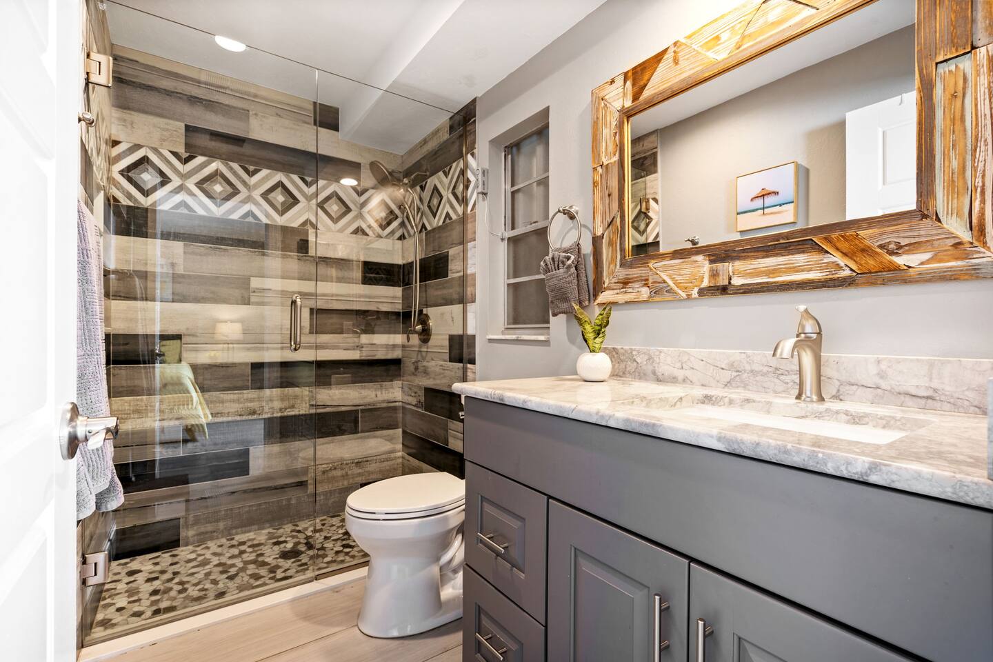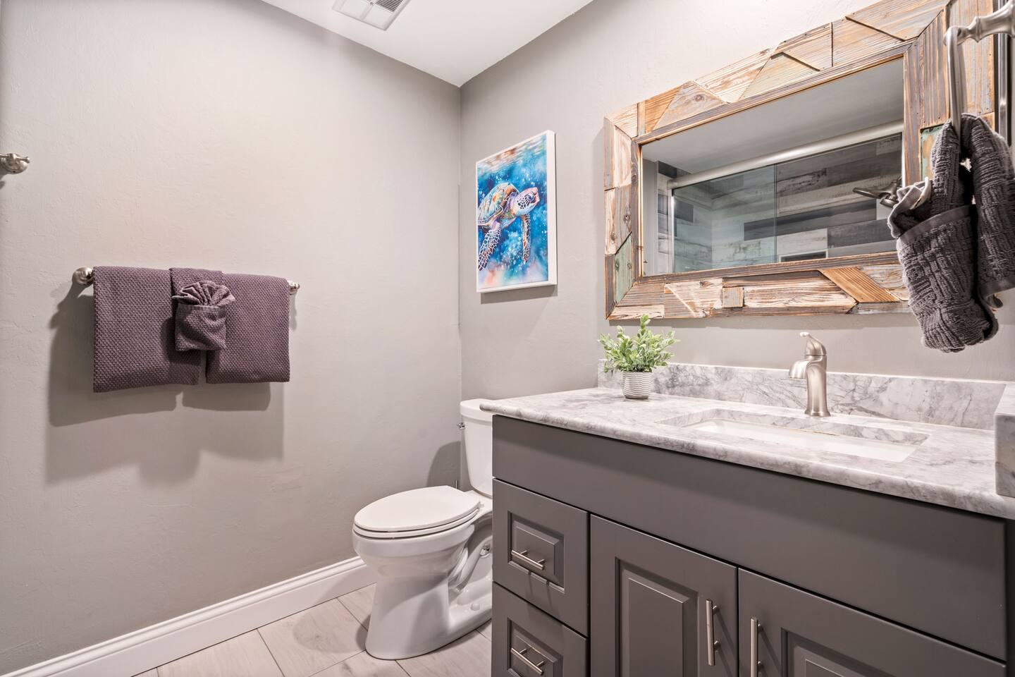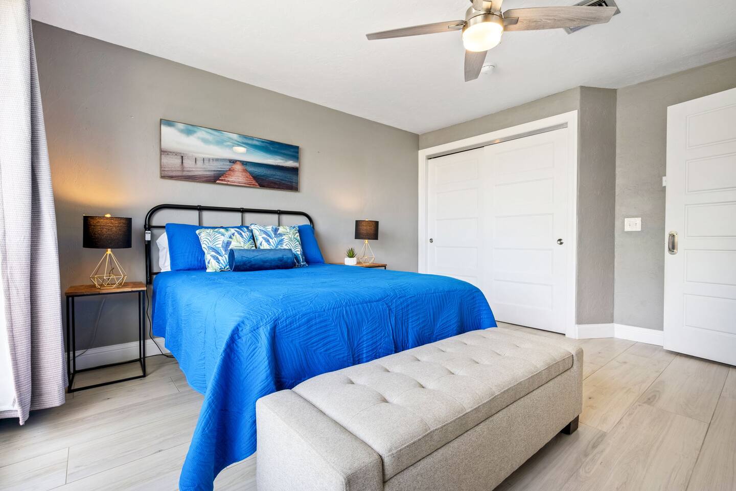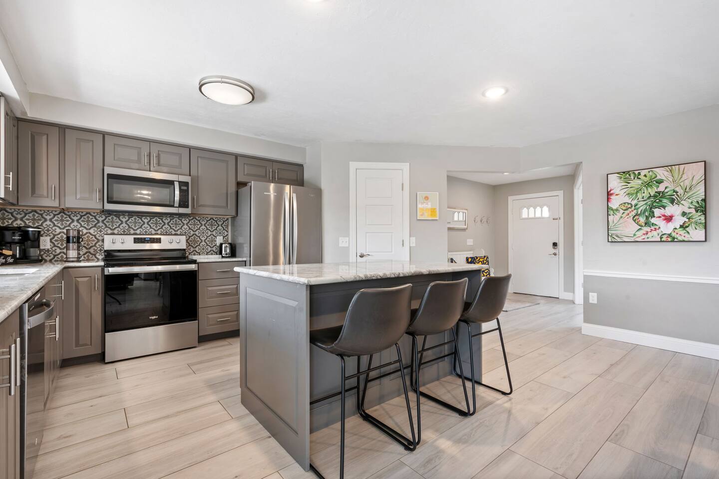 KEY FEATURES: ☀ Screened in Lanai with heated pool and hot tub, fire pit (please reach out 3 days in advance to have pool heat turned on) ☀ Outdoor patio dining for 8, 4 sun loungers ☀ Sleeps 9; 4 bedrooms, 1 king bed, 3 queen beds, pull out sofa bed ☀ 2 full bathrooms, one is a master suite ☀ Modern and well-equipped kitchen with seating for 8 guests ☀ All the beach chairs and amenities you need + bike rental service close by