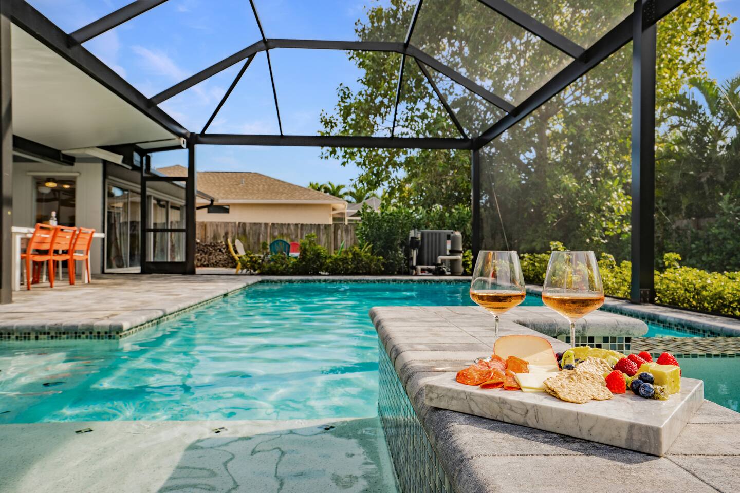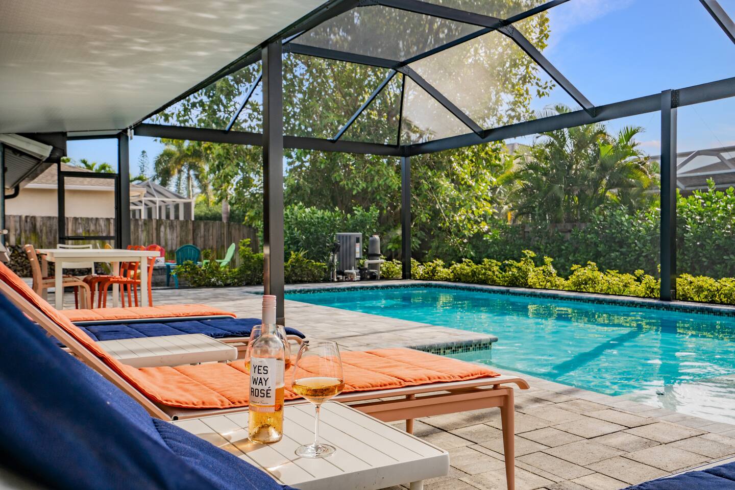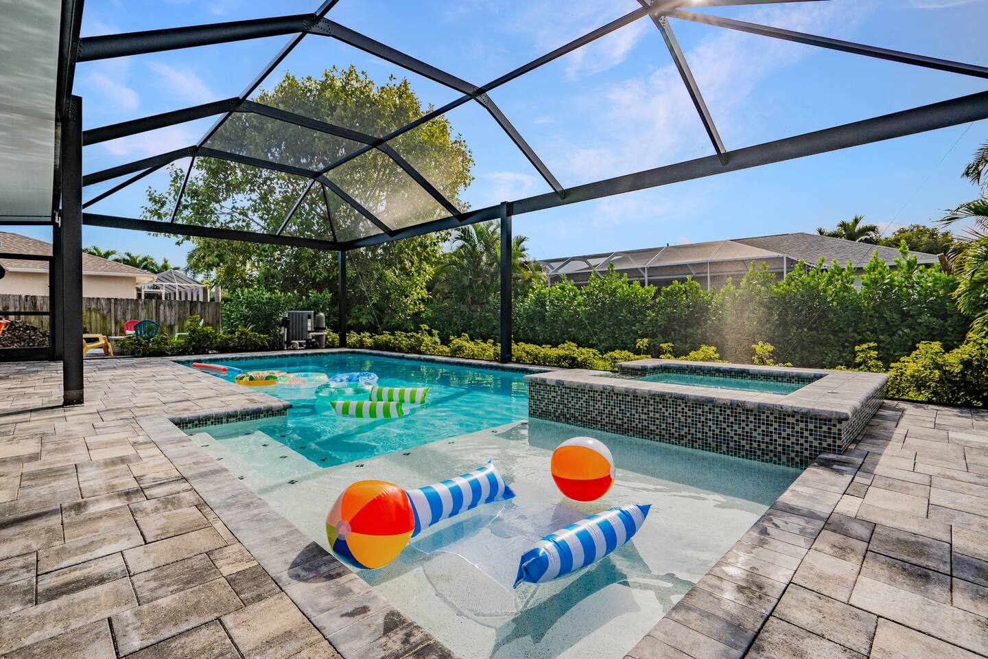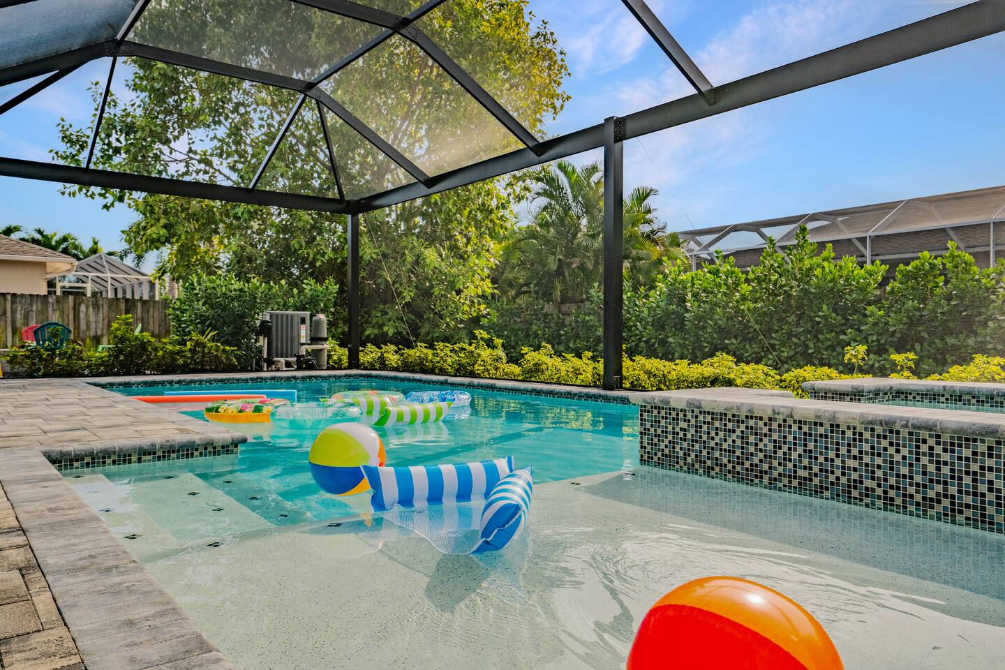 ☀ Can't beat the location! Close to beaches, shopping, surrounded by great food and plenty of options for local fishing charters, paddle board and kayak rentals, and many other water excursions! Welcome to your ultimate getaway! This home offers a spacious and versatile layout, perfect for families or groups of friends. The welcoming backyard with all of it's amenities it has to offer truly makes this home the best Marco island Vacation retreat: 7 min Drive to Tiger Tail Beach 7 min Drive to South Marco Beach 10 min Drive to Stan's Idle Hour 10 min Drive to Fishing Village 10 min Drive to Isle of Capri ☆☆ BEDROOMS ☆☆ Master Bedroom: Relax in the master suite, featuring a king-size bed with cheerful yellow sheets, a private en-suite bathroom, a flat-screen TV, and a closet. Enjoy direct walkout access to the pool area—perfect for a refreshing morning dip or evening relaxation. Guest Bedrooms: Guest Bedroom 1 is a cozy retreat with a queen-size bed and a convenient closet for all your belongings. Guest Bedroom 2 is thoughtfully designed for comfort, this room features a queen-size bed and multiple dressers, making it perfect for adults or kids to unpack and settle in. Converted Den - This bright and airy space offers natural sunlight, privacy, a queen-size bed, and a dedicated desk for work or study. Extra Sleeping Space in the living room includes a pull-out sofa bed, and there's an air mattress available for extra guests. ☆☆ BATHROOMS ☆☆ For the Master Bathroom - Enjoy the privacy of your own en-suite bathroom, with a shower, and complimentary essentials, including shampoo, conditioner, and body soap. In the main bathroom, it's perfect for shared use, this spacious bathroom features a shower and bathtub, with shampoo, conditioner, and body soap provided for your convenience. ☆☆ KITCHEN & LOUNGE & MORE ☆☆ Cook up delicious meals in the fully equipped kitchen, complete with all the appliances and utensils you’ll need. Enjoy meals at the dining table that seats 8, and take advantage of the convenient server window over the sink, providing easy access to the pool area—perfect for serving drinks or snacks! Relax and unwind in the spacious living room, featuring a TV with Roku streaming apps for entertainment. Large glass windows offer stunning views of the backyard, filling the space with natural light and creating a warm, inviting atmosphere. Just off the living room, the garage provides easy access to laundry facilities and is stocked with beach supplies to ensure you have everything you need for your adventures. ☆☆ OUTSIDE SPACE ☆☆ Step outside and experience a breathtaking outdoor retreat perfect for your family vacation! Enjoy the screened-in, heated pool or soak in the relaxing hot tub, all surrounded by comfortable sun loungers for ultimate relaxation. Fire up the BBQ and savor a delicious meal at the outdoor dining table, which seats eight. The backyard is spacious, beautifully maintained, and mostly fenced in for added privacy. This outdoor oasis is the perfect spot for creating unforgettable memories! ★☆ Book Today & Let Us Take Care Of You on Marco Island! ☆★
