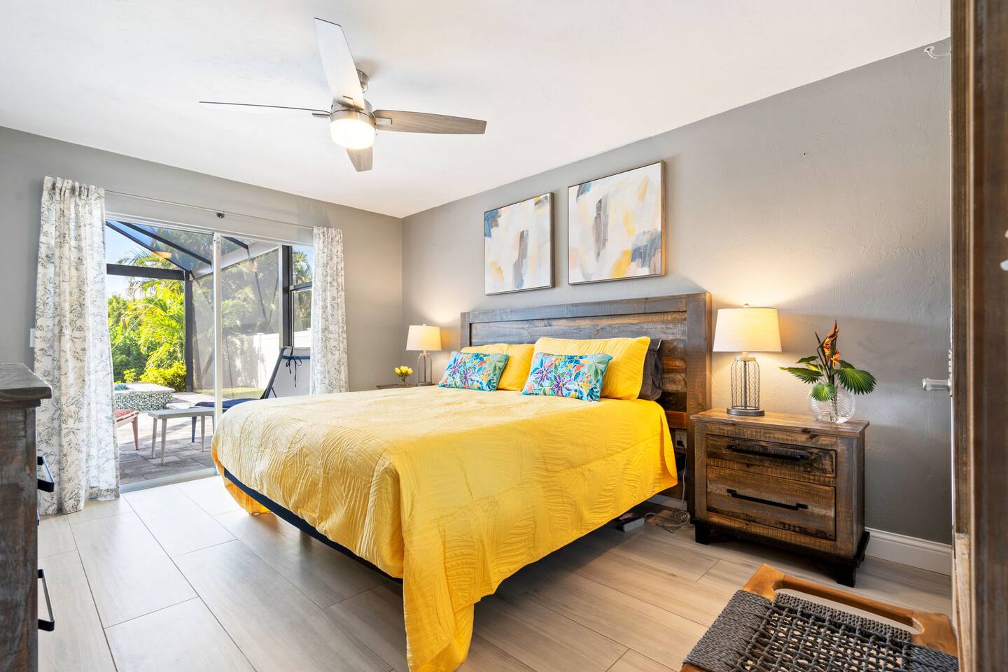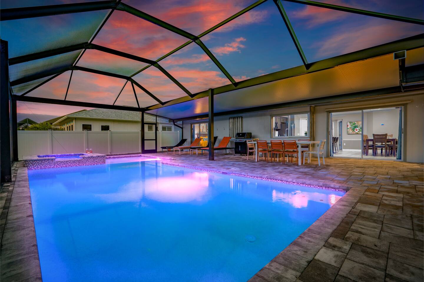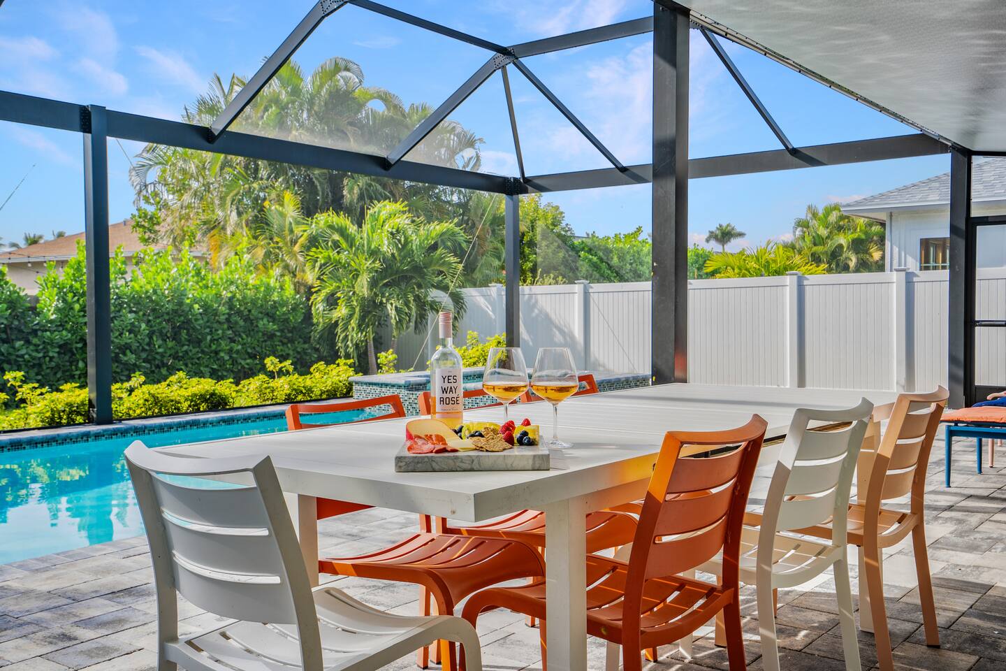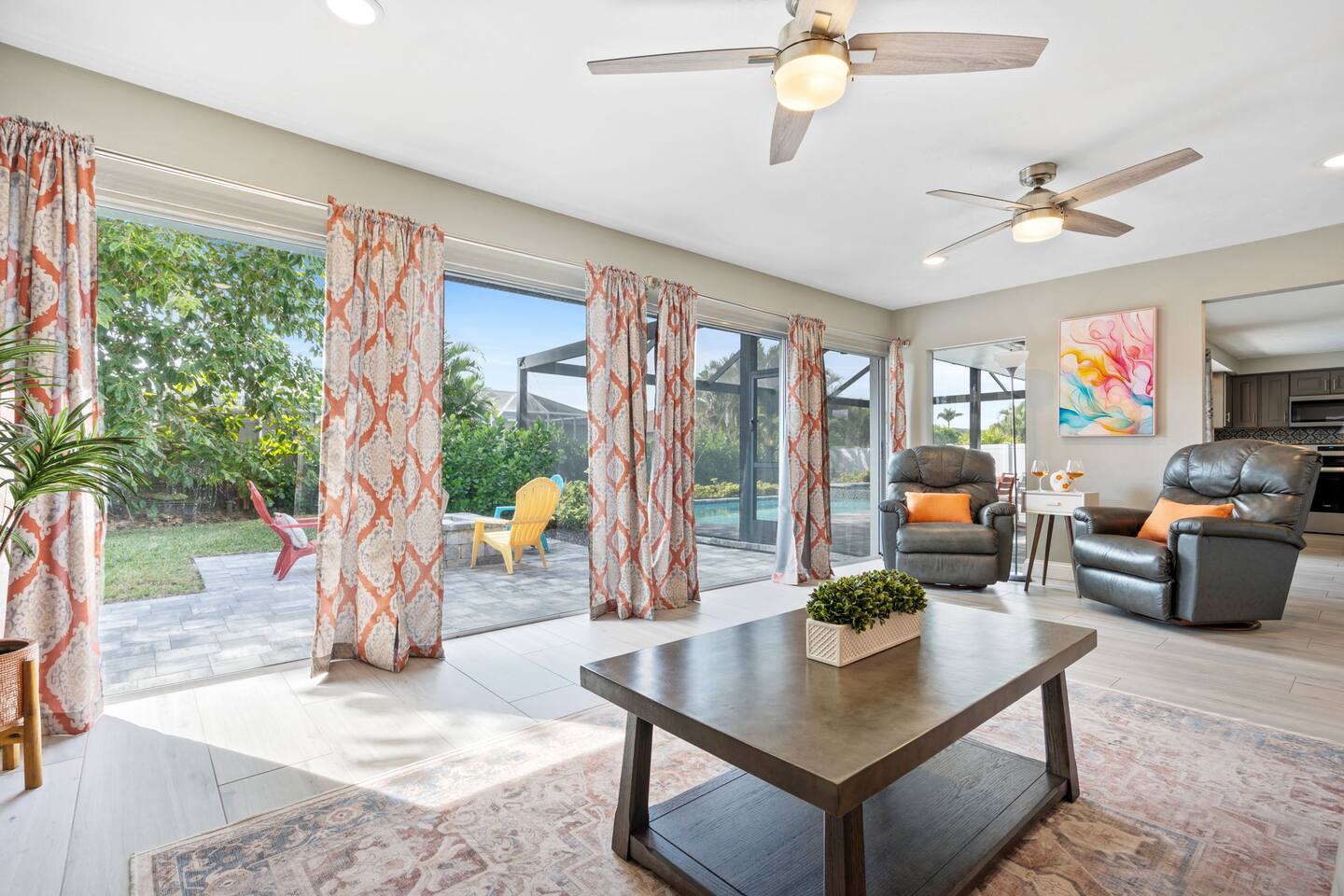 ☀ Can't beat the location! Close to beaches, shopping, surrounded by great food and plenty of options for local fishing charters, paddle board and kayak rentals, and many other water excursions! Welcome to your ultimate getaway! This home offers a spacious and versatile layout, perfect for families or groups of friends. The welcoming backyard with all of it's amenities it has to offer truly makes this home the best Marco island Vacation retreat: 7 min Drive to Tiger Tail Beach 7 min Drive to South Marco Beach 10 min Drive to Stan's Idle Hour 10 min Drive to Fishing Village 10 min Drive to Isle of Capri ☆☆ BEDROOMS ☆☆ Master Bedroom: Relax in the master suite, featuring a king-size bed with cheerful yellow sheets, a private en-suite bathroom, a flat-screen TV, and a closet. Enjoy direct walkout access to the pool area—perfect for a refreshing morning dip or evening relaxation. Guest Bedrooms: Guest Bedroom 1 is a cozy retreat with a queen-size bed and a convenient closet for all your belongings. Guest Bedroom 2 is thoughtfully designed for comfort, this room features a queen-size bed and multiple dressers, making it perfect for adults or kids to unpack and settle in. Converted Den - This bright and airy space offers natural sunlight, privacy, a queen-size bed, and a dedicated desk for work or study. Extra Sleeping Space in the living room includes a pull-out sofa bed, and there's an air mattress available for extra guests. ☆☆ BATHROOMS ☆☆ For the Master Bathroom - Enjoy the privacy of your own en-suite bathroom, with a shower, and complimentary essentials, including shampoo, conditioner, and body soap. In the main bathroom, it's perfect for shared use, this spacious bathroom features a shower and bathtub, with shampoo, conditioner, and body soap provided for your convenience. ☆☆ KITCHEN & LOUNGE & MORE ☆☆ Cook up delicious meals in the fully equipped kitchen, complete with all the appliances and utensils you’ll need. Enjoy meals at the dining table that seats 8, and take advantage of the convenient server window over the sink, providing easy access to the pool area—perfect for serving drinks or snacks! Relax and unwind in the spacious living room, featuring a TV with Roku streaming apps for entertainment. Large glass windows offer stunning views of the backyard, filling the space with natural light and creating a warm, inviting atmosphere. Just off the living room, the garage provides easy access to laundry facilities and is stocked with beach supplies to ensure you have everything you need for your adventures. ☆☆ OUTSIDE SPACE ☆☆ Step outside and experience a breathtaking outdoor retreat perfect for your family vacation! Enjoy the screened-in, heated pool or soak in the relaxing hot tub, all surrounded by comfortable sun loungers for ultimate relaxation. Fire up the BBQ and savor a delicious meal at the outdoor dining table, which seats eight. The backyard is spacious, beautifully maintained, and mostly fenced in for added privacy. This outdoor oasis is the perfect spot for creating unforgettable memories! ★☆ Book Today & Let Us Take Care Of You on Marco Island! ☆★