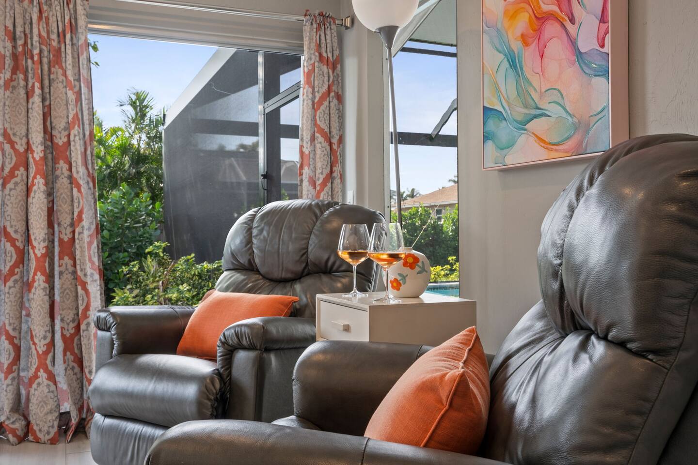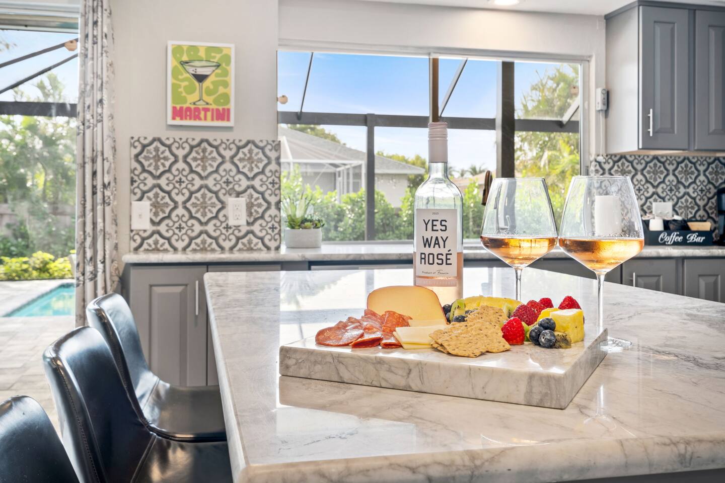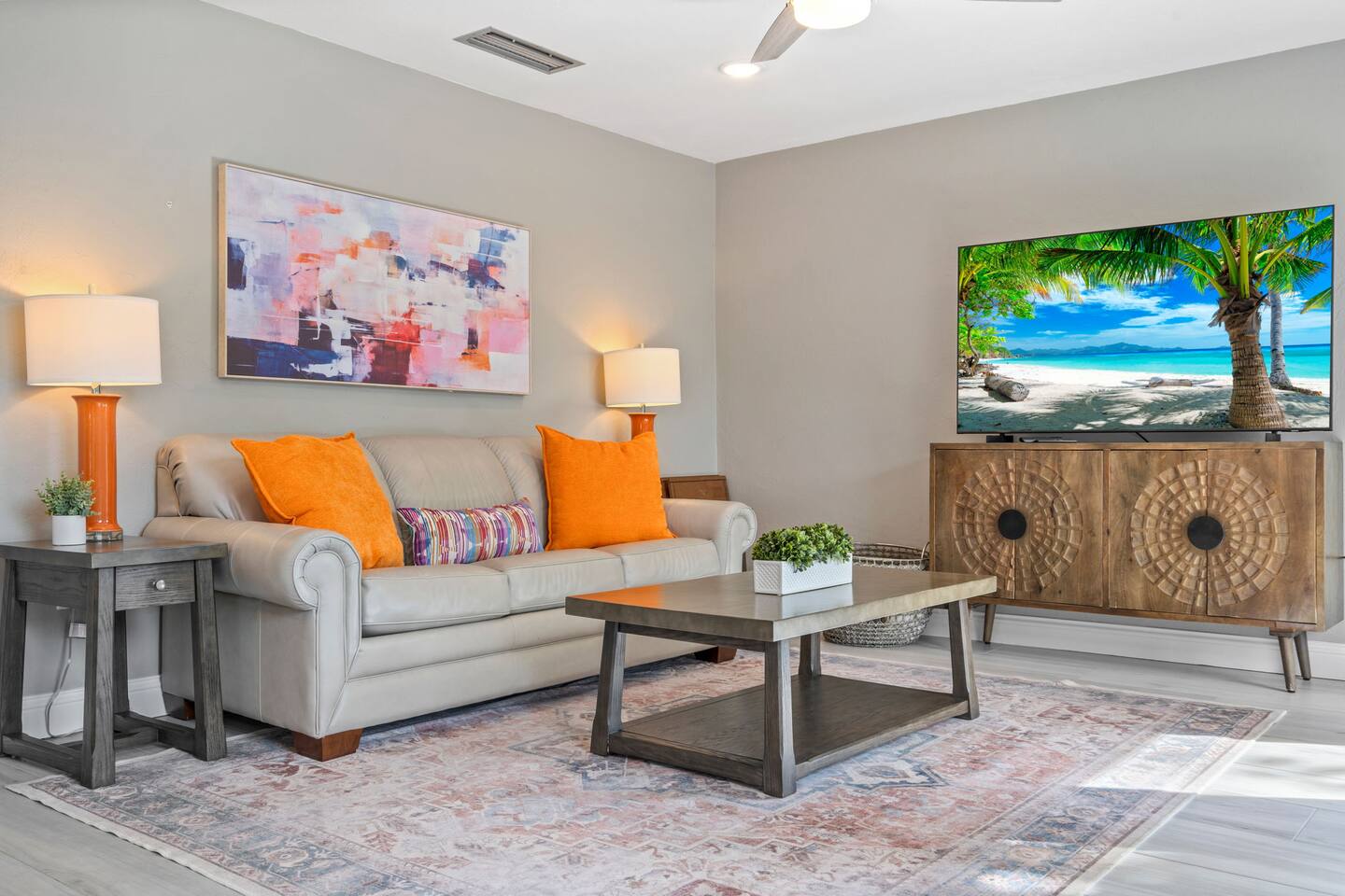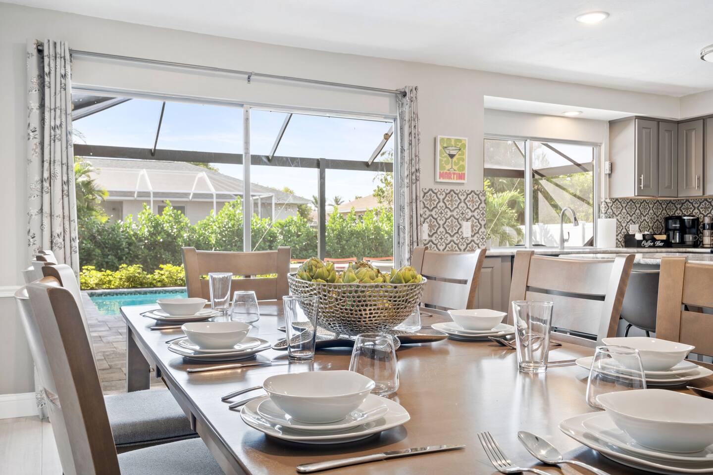 ☀ Can't beat the location! Close to beaches, shopping, surrounded by great food and plenty of options for local fishing charters, paddle board and kayak rentals, and many other water excursions! Welcome to your ultimate getaway! This home offers a spacious and versatile layout, perfect for families or groups of friends. The welcoming backyard with all of it's amenities it has to offer truly makes this home the best Marco island Vacation retreat: 7 min Drive to Tiger Tail Beach 7 min Drive to South Marco Beach 10 min Drive to Stan's Idle Hour 10 min Drive to Fishing Village 10 min Drive to Isle of Capri ☆☆ BEDROOMS ☆☆ Master Bedroom: Relax in the master suite, featuring a king-size bed with cheerful yellow sheets, a private en-suite bathroom, a flat-screen TV, and a closet. Enjoy direct walkout access to the pool area—perfect for a refreshing morning dip or evening relaxation. Guest Bedrooms: Guest Bedroom 1 is a cozy retreat with a queen-size bed and a convenient closet for all your belongings. Guest Bedroom 2 is thoughtfully designed for comfort, this room features a queen-size bed and multiple dressers, making it perfect for adults or kids to unpack and settle in. Converted Den - This bright and airy space offers natural sunlight, privacy, a queen-size bed, and a dedicated desk for work or study. Extra Sleeping Space in the living room includes a pull-out sofa bed, and there's an air mattress available for extra guests. ☆☆ BATHROOMS ☆☆ For the Master Bathroom - Enjoy the privacy of your own en-suite bathroom, with a shower, and complimentary essentials, including shampoo, conditioner, and body soap. In the main bathroom, it's perfect for shared use, this spacious bathroom features a shower and bathtub, with shampoo, conditioner, and body soap provided for your convenience. ☆☆ KITCHEN & LOUNGE & MORE ☆☆ Cook up delicious meals in the fully equipped kitchen, complete with all the appliances and utensils you’ll need. Enjoy meals at the dining table that seats 8, and take advantage of the convenient server window over the sink, providing easy access to the pool area—perfect for serving drinks or snacks! Relax and unwind in the spacious living room, featuring a TV with Roku streaming apps for entertainment. Large glass windows offer stunning views of the backyard, filling the space with natural light and creating a warm, inviting atmosphere. Just off the living room, the garage provides easy access to laundry facilities and is stocked with beach supplies to ensure you have everything you need for your adventures. ☆☆ OUTSIDE SPACE ☆☆ Step outside and experience a breathtaking outdoor retreat perfect for your family vacation! Enjoy the screened-in, heated pool or soak in the relaxing hot tub, all surrounded by comfortable sun loungers for ultimate relaxation. Fire up the BBQ and savor a delicious meal at the outdoor dining table, which seats eight. The backyard is spacious, beautifully maintained, and mostly fenced in for added privacy. This outdoor oasis is the perfect spot for creating unforgettable memories! ★☆ Book Today & Let Us Take Care Of You on Marco Island! ☆★