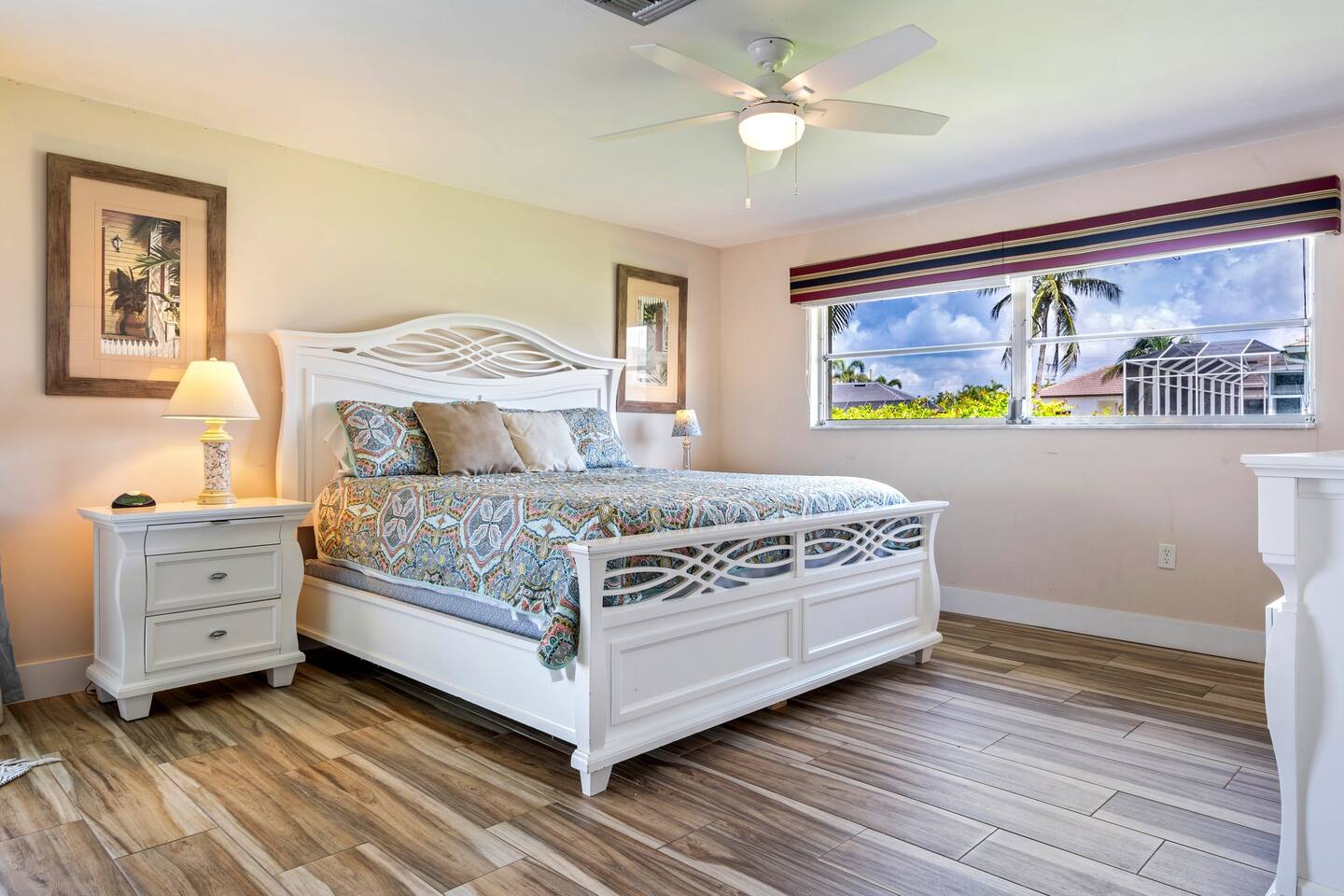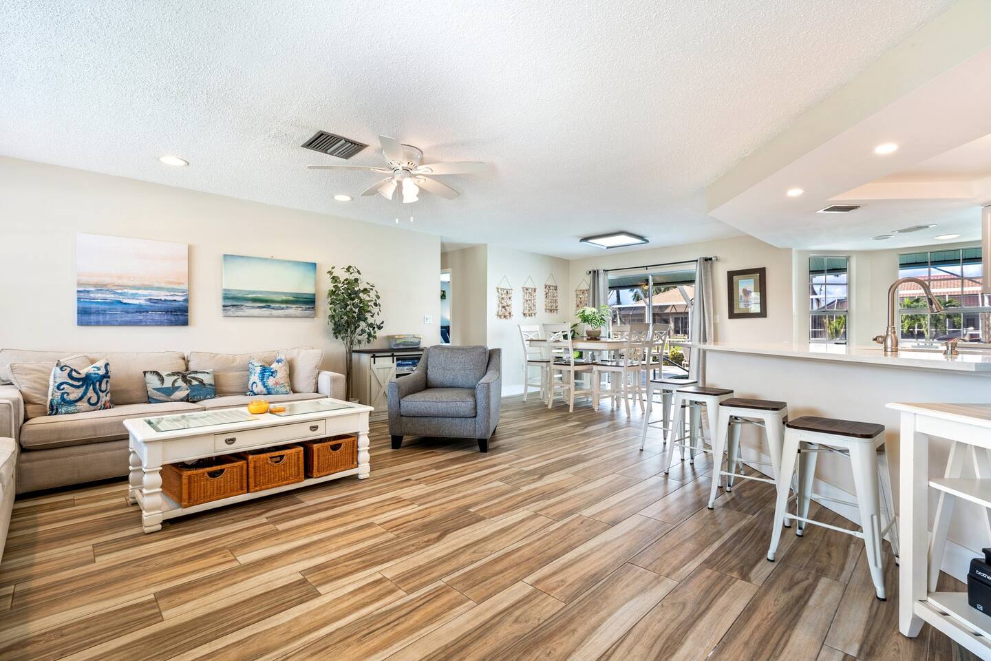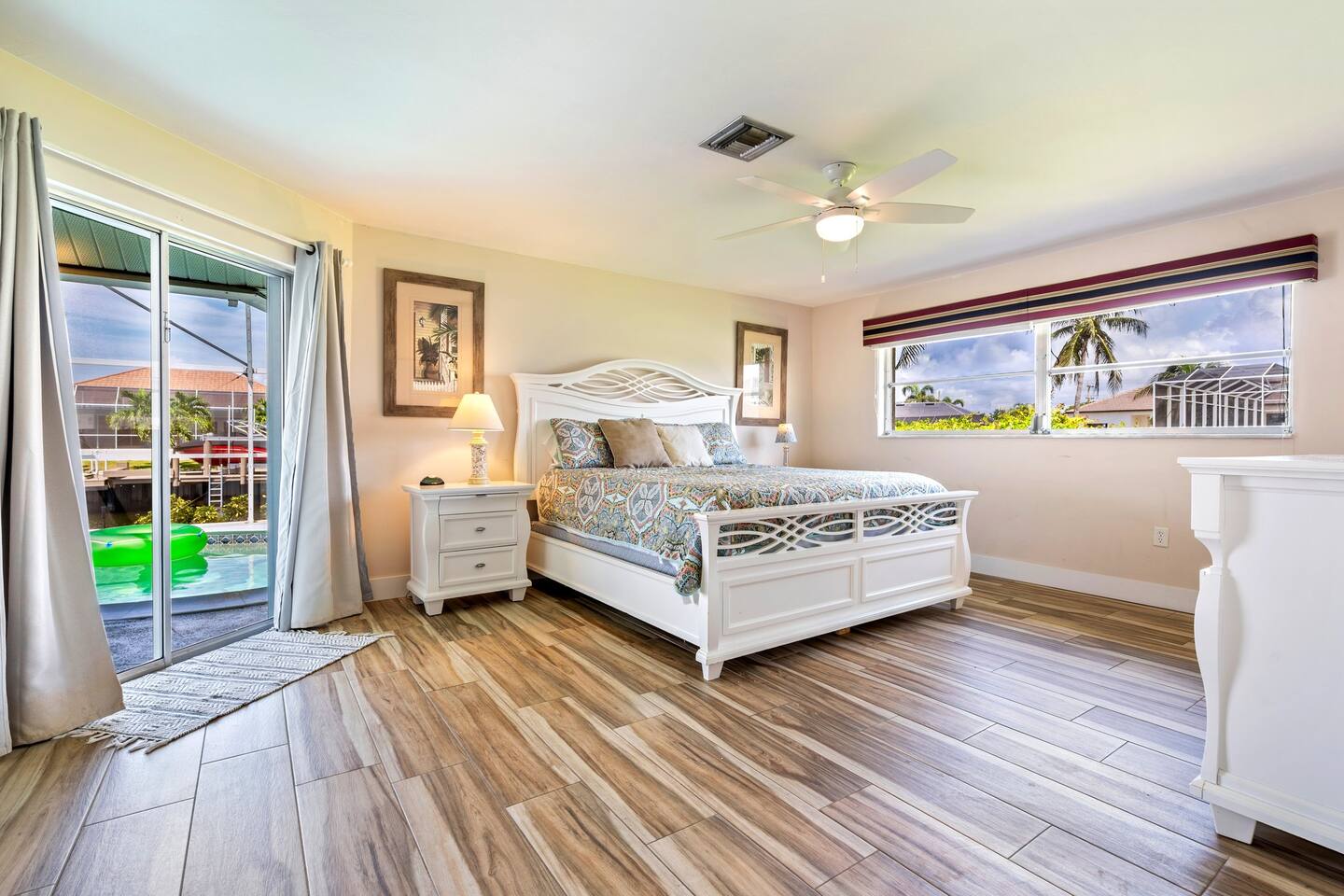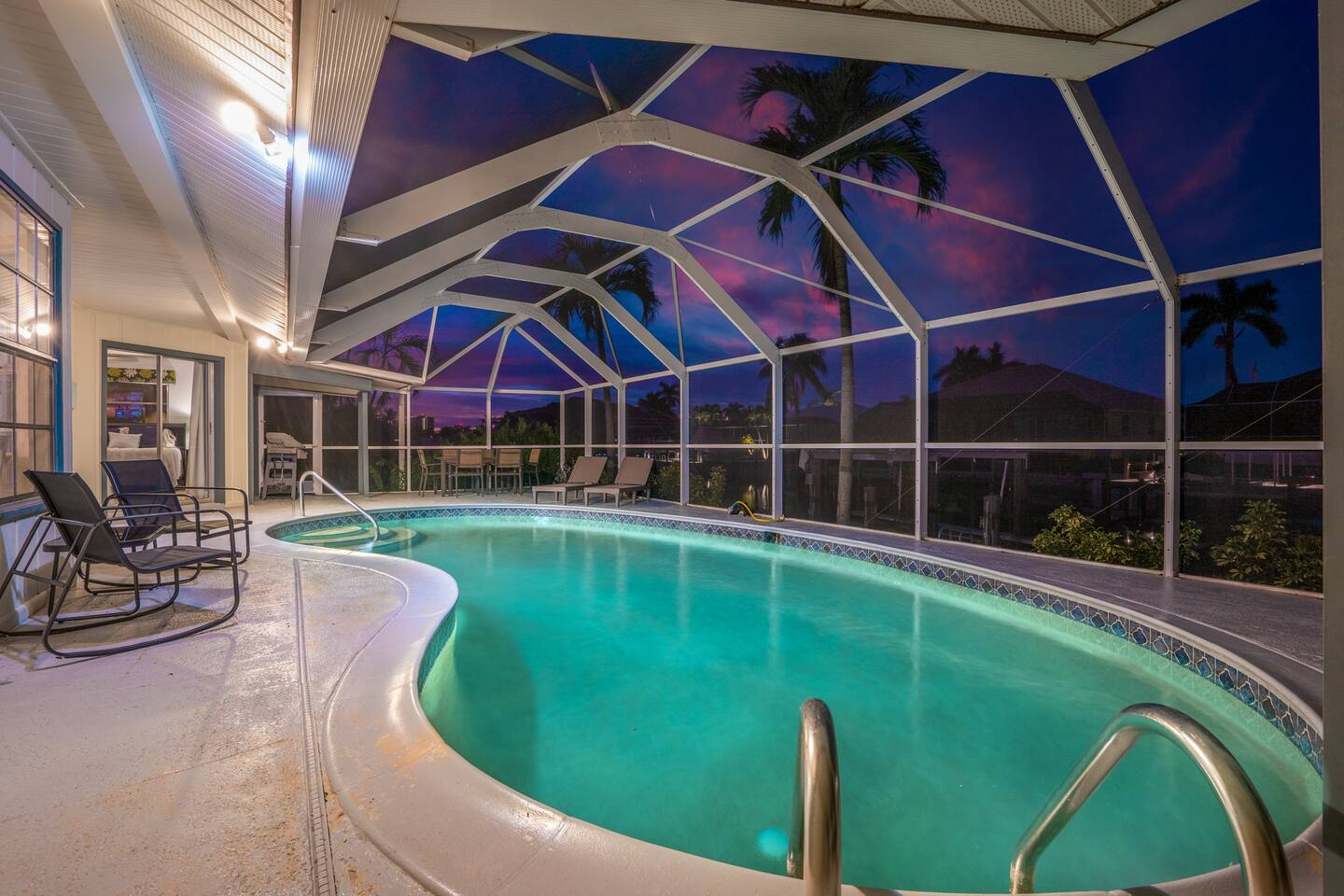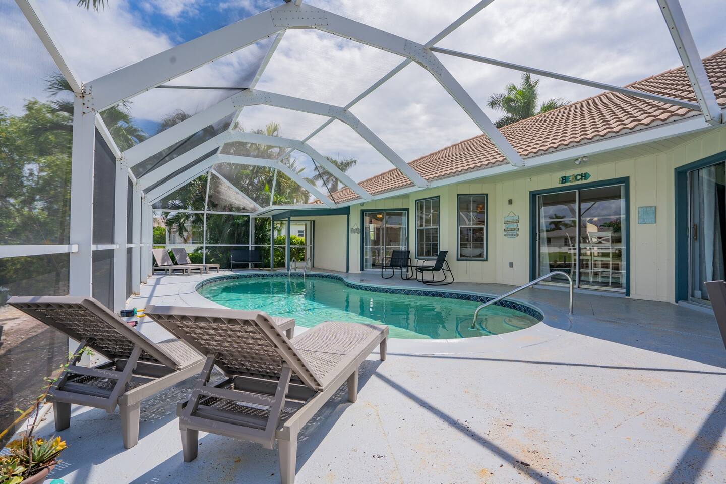 KEY FEATURES: ☀ Waterfront backyard with outdoor patio for with dining space for 6, patio furniture, 4 sun loungers, and a dock (Please reach out about boat space) ☀ Heated screened in Pool (please reach out 3 days in advance to have pool heat turned on) ☀ Sleeps 9; 3 bedrooms, 1 King bed, 1 Queen bed, 1 Pull out Bunk Bed (1 twin bed on top, a full on the bottom, and a full pullout bed) ☀ 2 Bathrooms; 1 Master bathroom with walk-in shower and 1 full bath with shower and tub options. ☀ Modern and well-equipped kitchen with seating for 6 guests; 4 counter seats at the kitchen Island, coffee nook, and corner office space ☀ Bike service available for rent! Dropped off at the home before you arrive ☀ Ample amount of beach chairs + beach amenities for the whole family to use ☀ Can't beat the location! Close to beaches, shopping, surrounded by great food and plenty of options for local fishing charters, paddle board and kayak rentals, and many other water excursions! ☆☆ BEDROOMS ☆☆ Unwind in the elegant master bedroom featuring a comfortable king-size bed and direct access to the pool for a refreshing dip anytime. This spacious suite also includes a new smart TV for entertainment, a private bathroom, and a large walk-in closet. With additional dressers for extra storage, this room offers both luxury and convenience for a perfect stay. As you walk through the living room you will find both guest bedrooms in the left side of the home- In the first, an inviting bedroom that features a comfortable queen-size bed and a direct walkout to the pool, pull back the curtains and wake up to a gorgeous view. The room also includes a closet for your storage needs and a TV for entertainment with Roku for your streaming apps. Enjoy some peace and quite or watch a movie before recharging the batteries for another day on the island. The second guest bedroom is perfect for kids or friends, this cheerful bunk room features a sturdy bunk bed with two full-size mattresses and a single bed on top. The pull-out trundle bed adds extra sleeping space, making it ideal for larger groups or families. Whether you’re winding down after a day of adventure or having a sleepover, this room offers comfort and flexibility for a memorable stay! ☆☆ BATHROOMS ☆☆ You'll enjoy a well-appointed shared full bathroom conveniently located in the hallway between the two guest bedrooms, featuring a relaxing tub and shower. The master bathroom is a private retreat, complete with a stand-up shower for quick refreshment. To make your stay even more comfortable, we provide complimentary shampoo, body wash, and conditioner. Enjoy the perfect blend of privacy and convenience during your stay! ☆☆ KITCHEN & LOUNGE ☆☆ Welcome to our inviting open-concept space, where the living room, kitchen, and dining area seamlessly flow together, creating the perfect environment for relaxation and socializing, and entertaining guests. The kitchen provides ample space to chef up your favorite meals, with a luxurious extended kitchen island and a dining table for 6 just steps away. Enjoy your morning coffee in the cozy nook area with pool and water views, and also includes a mini office space for any remote work needs. AT the end of a fun day in the sun at the beach, gather the whole family in our modern style living room to watch come of your favorite streaming apps on the Roku TV. For added convenience, the laundry area is located in the garage. Making it easy to keep your belongings fresh during your stay. This thoughtfully designed layout ensures comfort and functionality for all guests! ☆☆ OUTSIDE SPACE ☆☆ Step outside to your own private oasis! Enjoy the refreshing pool, perfect for a leisurely swim or lounging in the sun. The dock offers easy access for water activities, while the outdoor furniture provides a comfortable spot to relax. Gather around the outdoor dining table, which seats six, for al fresco meals under the stars, and fire up the BBQ grill for a fun cookout. This outdoor space is designed for relaxation and entertainment, making it the ideal setting for unforgettable moments! ★☆ Book Today & Let Us Take Care Of You on Marco Island! ☆★