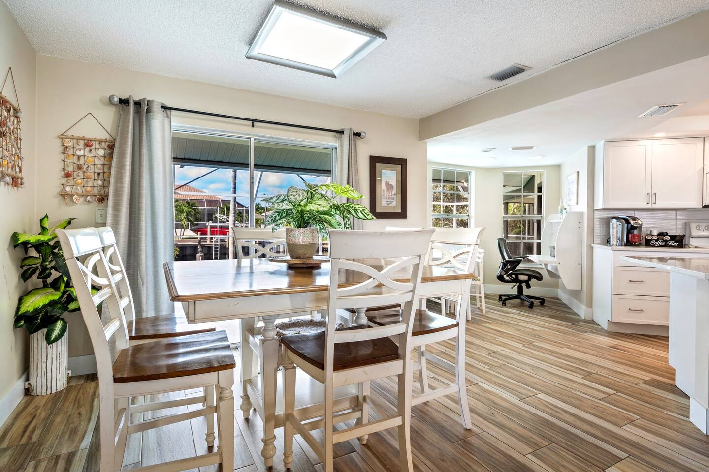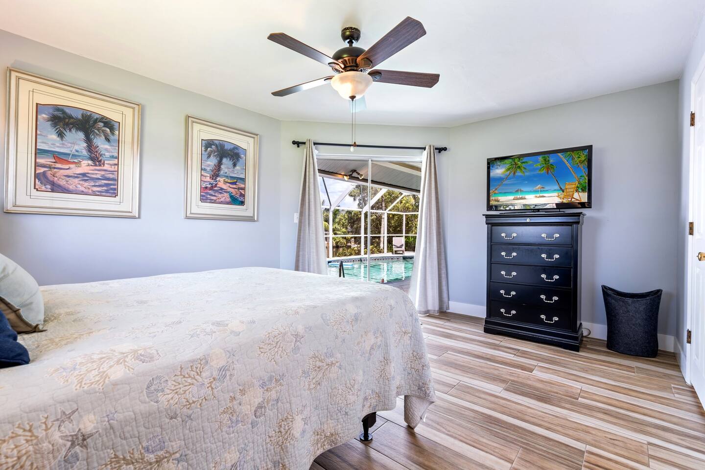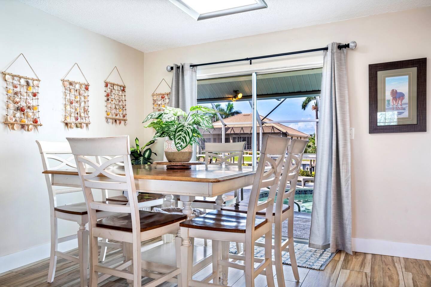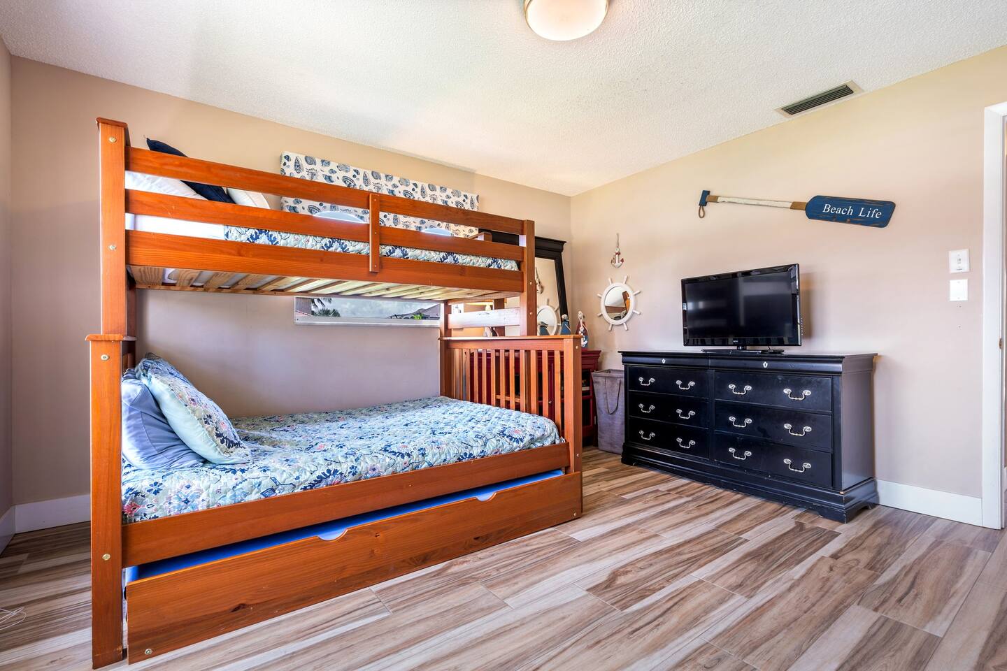KEY FEATURES: ☀ Waterfront backyard with outdoor patio for with dining space for 6, patio furniture, 4 sun loungers, and a dock (Please reach out about boat space) ☀ Heated screened in Pool (please reach out 3 days in advance to have pool heat turned on) ☀ Sleeps 9; 3 bedrooms, 1 King bed, 1 Queen bed, 1 Pull out Bunk Bed (1 twin bed on top, a full on the bottom, and a full pullout bed) ☀ 2 Bathrooms; 1 Master bathroom with walk-in shower and 1 full bath with shower and tub options. ☀ Modern and well-equipped kitchen with seating for 6 guests; 4 counter seats at the kitchen Island, coffee nook, and corner office space ☀ Bike service available for rent! Dropped off at the home before you arrive ☀ Ample amount of beach chairs + beach amenities for the whole family to use ☀ Can't beat the location! Close to beaches, shopping, surrounded by great food and plenty of options for local fishing charters, paddle board and kayak rentals, and many other water excursions! ☆☆ BEDROOMS ☆☆ Unwind in the elegant master bedroom featuring a comfortable king-size bed and direct access to the pool for a refreshing dip anytime. This spacious suite also includes a new smart TV for entertainment, a private bathroom, and a large walk-in closet. With additional dressers for extra storage, this room offers both luxury and convenience for a perfect stay. As you walk through the living room you will find both guest bedrooms in the left side of the home- In the first, an inviting bedroom that features a comfortable queen-size bed and a direct walkout to the pool, pull back the curtains and wake up to a gorgeous view. The room also includes a closet for your storage needs and a TV for entertainment with Roku for your streaming apps. Enjoy some peace and quite or watch a movie before recharging the batteries for another day on the island. The second guest bedroom is perfect for kids or friends, this cheerful bunk room features a sturdy bunk bed with two full-size mattresses and a single bed on top. The pull-out trundle bed adds extra sleeping space, making it ideal for larger groups or families. Whether you’re winding down after a day of adventure or having a sleepover, this room offers comfort and flexibility for a memorable stay! ☆☆ BATHROOMS ☆☆ You'll enjoy a well-appointed shared full bathroom conveniently located in the hallway between the two guest bedrooms, featuring a relaxing tub and shower. The master bathroom is a private retreat, complete with a stand-up shower for quick refreshment. To make your stay even more comfortable, we provide complimentary shampoo, body wash, and conditioner. Enjoy the perfect blend of privacy and convenience during your stay! ☆☆ KITCHEN & LOUNGE ☆☆ Welcome to our inviting open-concept space, where the living room, kitchen, and dining area seamlessly flow together, creating the perfect environment for relaxation and socializing, and entertaining guests. The kitchen provides ample space to chef up your favorite meals, with a luxurious extended kitchen island and a dining table for 6 just steps away. Enjoy your morning coffee in the cozy nook area with pool and water views, and also includes a mini office space for any remote work needs. AT the end of a fun day in the sun at the beach, gather the whole family in our modern style living room to watch come of your favorite streaming apps on the Roku TV. For added convenience, the laundry area is located in the garage. Making it easy to keep your belongings fresh during your stay. This thoughtfully designed layout ensures comfort and functionality for all guests! ☆☆ OUTSIDE SPACE ☆☆ Step outside to your own private oasis! Enjoy the refreshing pool, perfect for a leisurely swim or lounging in the sun. The dock offers easy access for water activities, while the outdoor furniture provides a comfortable spot to relax. Gather around the outdoor dining table, which seats six, for al fresco meals under the stars, and fire up the BBQ grill for a fun cookout. This outdoor space is designed for relaxation and entertainment, making it the ideal setting for unforgettable moments! ★☆ Book Today & Let Us Take Care Of You on Marco Island! ☆★
