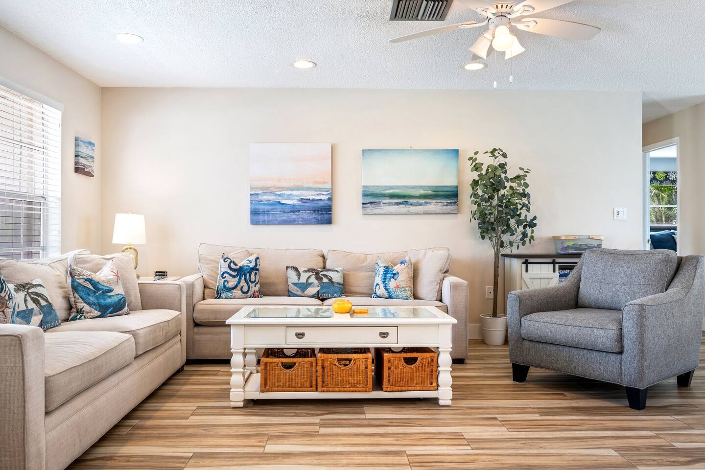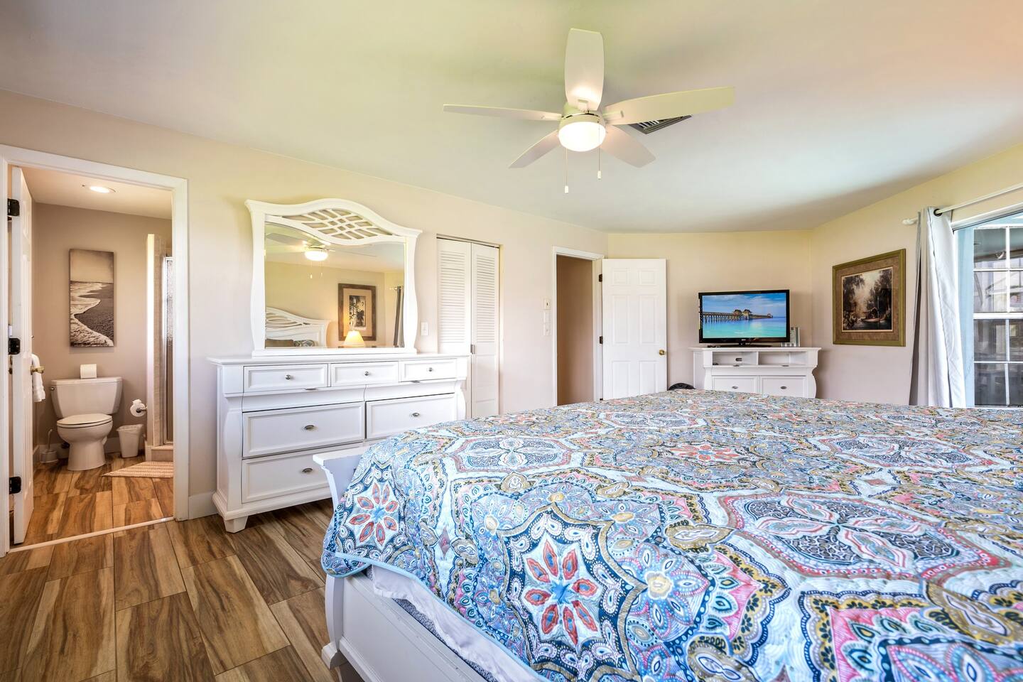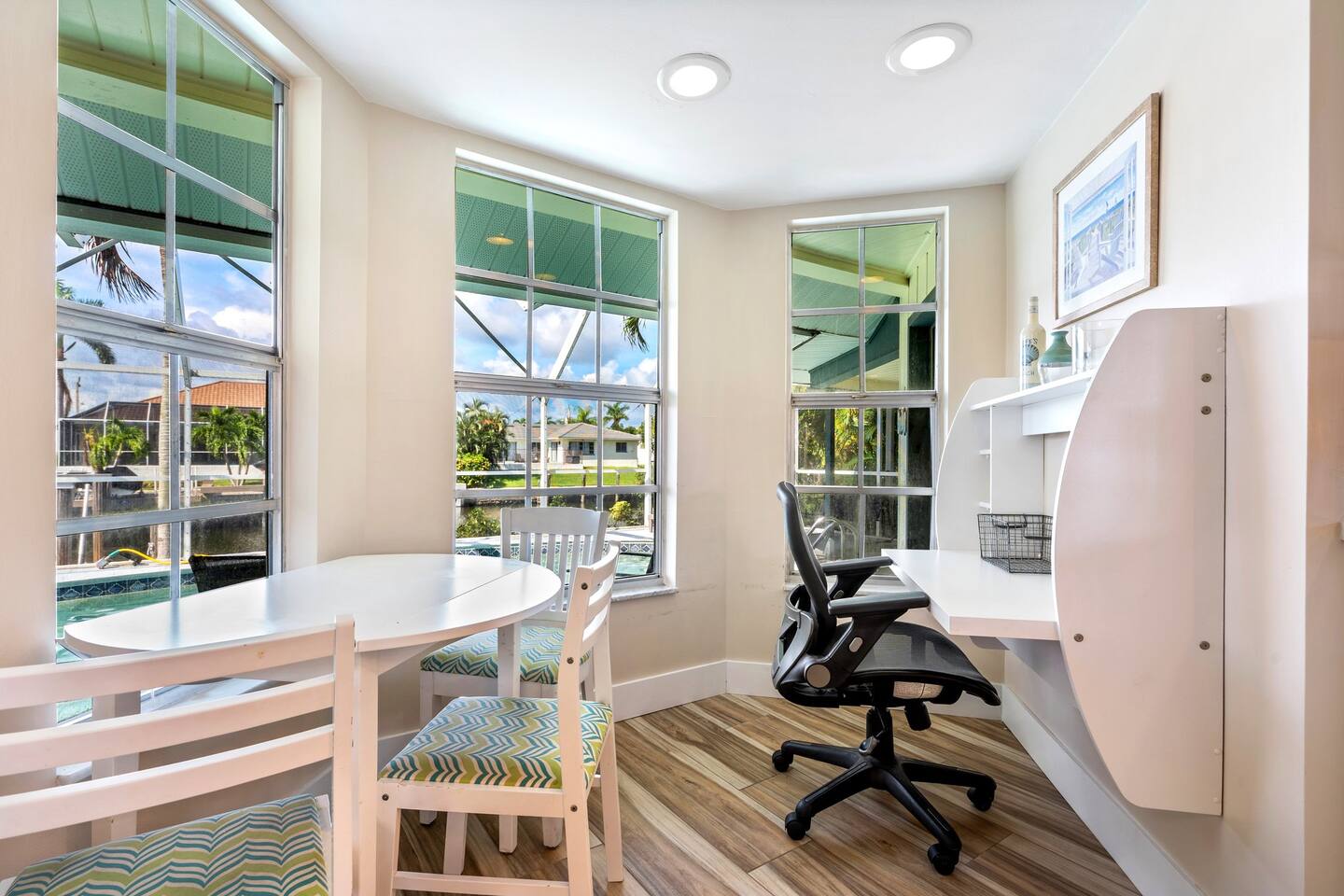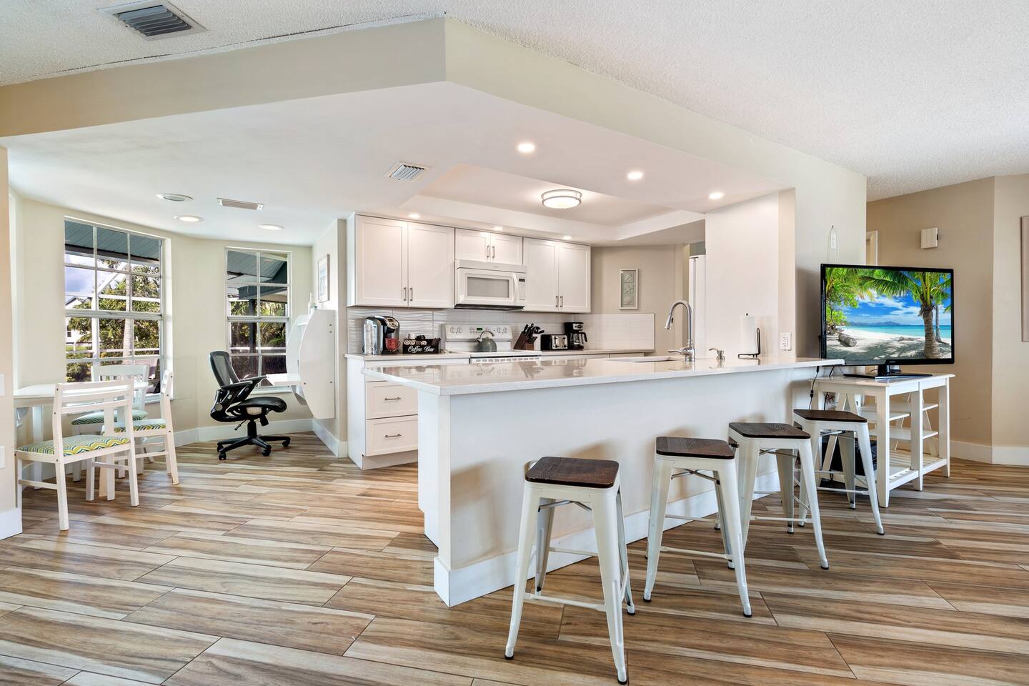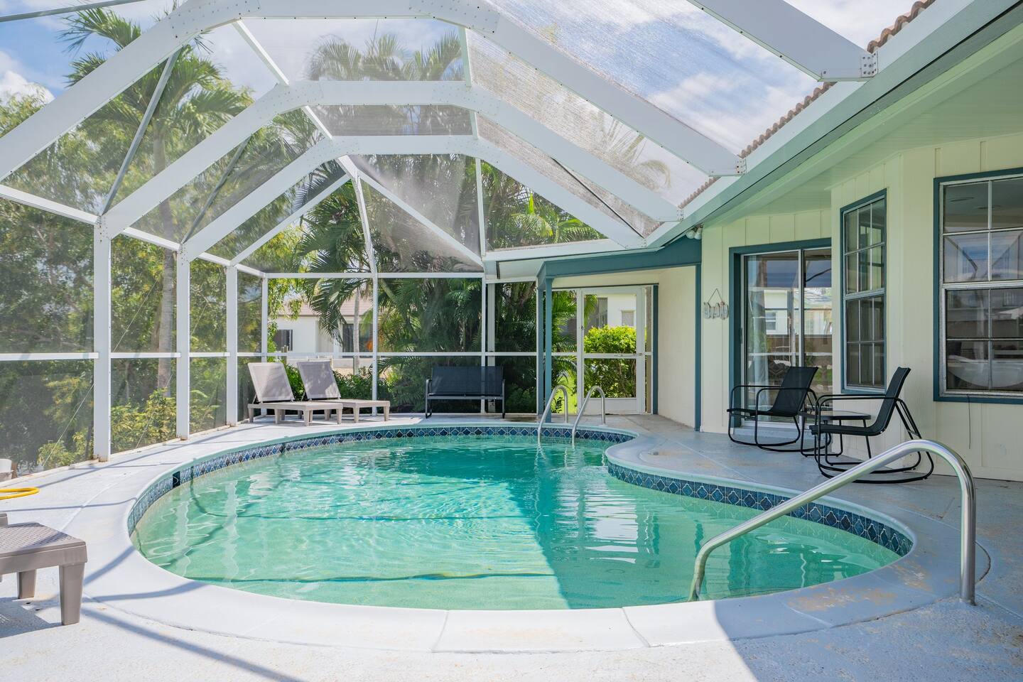 KEY FEATURES: ☀ Waterfront backyard with outdoor patio for with dining space for 6, patio furniture, 4 sun loungers, and a dock (Please reach out about boat space) ☀ Heated screened in Pool (please reach out 3 days in advance to have pool heat turned on) ☀ Sleeps 9; 3 bedrooms, 1 King bed, 1 Queen bed, 1 Pull out Bunk Bed (1 twin bed on top, a full on the bottom, and a full pullout bed) ☀ 2 Bathrooms; 1 Master bathroom with walk-in shower and 1 full bath with shower and tub options. ☀ Modern and well-equipped kitchen with seating for 6 guests; 4 counter seats at the kitchen Island, coffee nook, and corner office space ☀ Bike service available for rent! Dropped off at the home before you arrive ☀ Ample amount of beach chairs + beach amenities for the whole family to use ☀ Can't beat the location! Close to beaches, shopping, surrounded by great food and plenty of options for local fishing charters, paddle board and kayak rentals, and many other water excursions! ☆☆ BEDROOMS ☆☆ Unwind in the elegant master bedroom featuring a comfortable king-size bed and direct access to the pool for a refreshing dip anytime. This spacious suite also includes a new smart TV for entertainment, a private bathroom, and a large walk-in closet. With additional dressers for extra storage, this room offers both luxury and convenience for a perfect stay. As you walk through the living room you will find both guest bedrooms in the left side of the home- In the first, an inviting bedroom that features a comfortable queen-size bed and a direct walkout to the pool, pull back the curtains and wake up to a gorgeous view. The room also includes a closet for your storage needs and a TV for entertainment with Roku for your streaming apps. Enjoy some peace and quite or watch a movie before recharging the batteries for another day on the island. The second guest bedroom is perfect for kids or friends, this cheerful bunk room features a sturdy bunk bed with two full-size mattresses and a single bed on top. The pull-out trundle bed adds extra sleeping space, making it ideal for larger groups or families. Whether you’re winding down after a day of adventure or having a sleepover, this room offers comfort and flexibility for a memorable stay! ☆☆ BATHROOMS ☆☆ You'll enjoy a well-appointed shared full bathroom conveniently located in the hallway between the two guest bedrooms, featuring a relaxing tub and shower. The master bathroom is a private retreat, complete with a stand-up shower for quick refreshment. To make your stay even more comfortable, we provide complimentary shampoo, body wash, and conditioner. Enjoy the perfect blend of privacy and convenience during your stay! ☆☆ KITCHEN & LOUNGE ☆☆ Welcome to our inviting open-concept space, where the living room, kitchen, and dining area seamlessly flow together, creating the perfect environment for relaxation and socializing, and entertaining guests. The kitchen provides ample space to chef up your favorite meals, with a luxurious extended kitchen island and a dining table for 6 just steps away. Enjoy your morning coffee in the cozy nook area with pool and water views, and also includes a mini office space for any remote work needs. AT the end of a fun day in the sun at the beach, gather the whole family in our modern style living room to watch come of your favorite streaming apps on the Roku TV. For added convenience, the laundry area is located in the garage. Making it easy to keep your belongings fresh during your stay. This thoughtfully designed layout ensures comfort and functionality for all guests! ☆☆ OUTSIDE SPACE ☆☆ Step outside to your own private oasis! Enjoy the refreshing pool, perfect for a leisurely swim or lounging in the sun. The dock offers easy access for water activities, while the outdoor furniture provides a comfortable spot to relax. Gather around the outdoor dining table, which seats six, for al fresco meals under the stars, and fire up the BBQ grill for a fun cookout. This outdoor space is designed for relaxation and entertainment, making it the ideal setting for unforgettable moments! ★☆ Book Today & Let Us Take Care Of You on Marco Island! ☆★