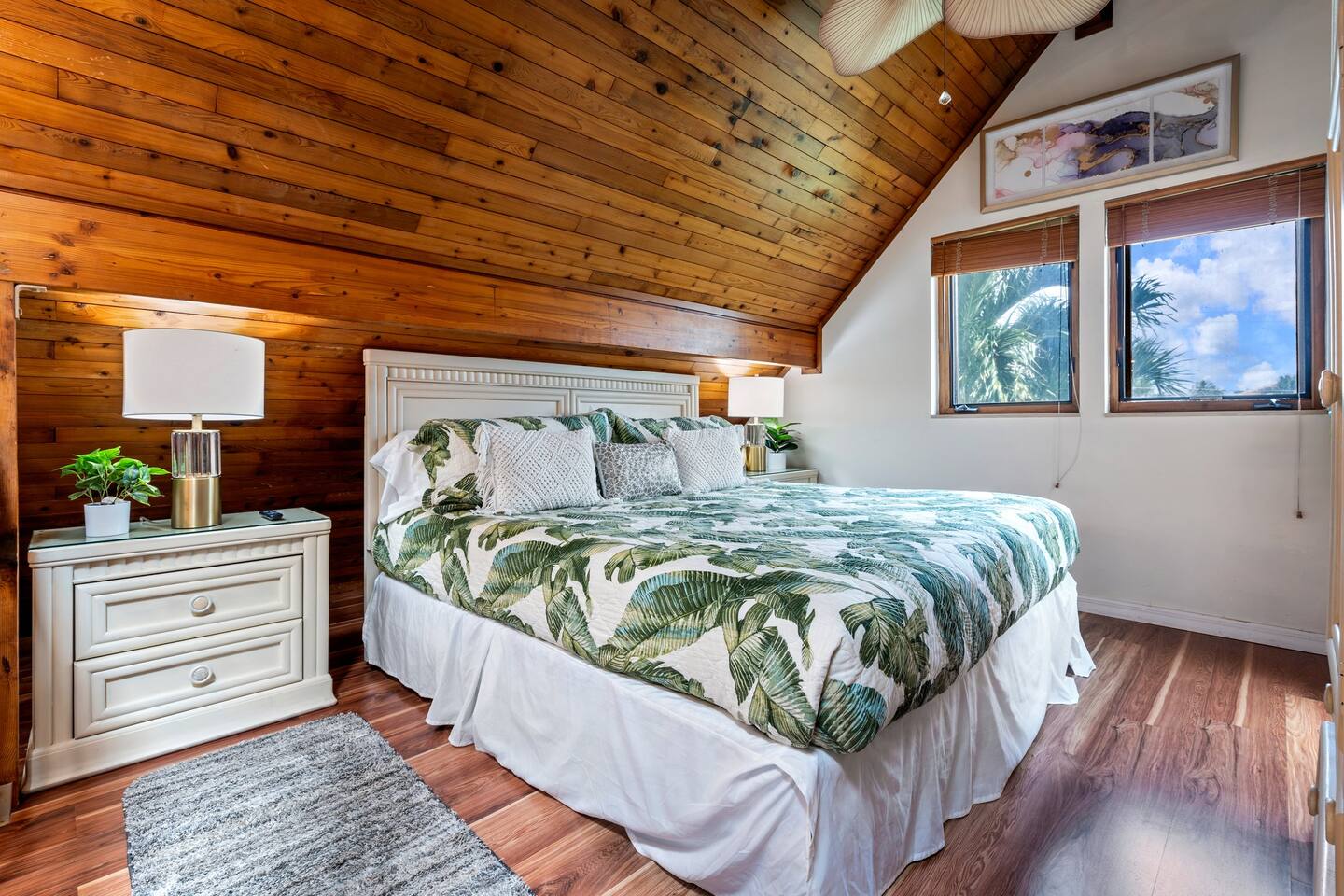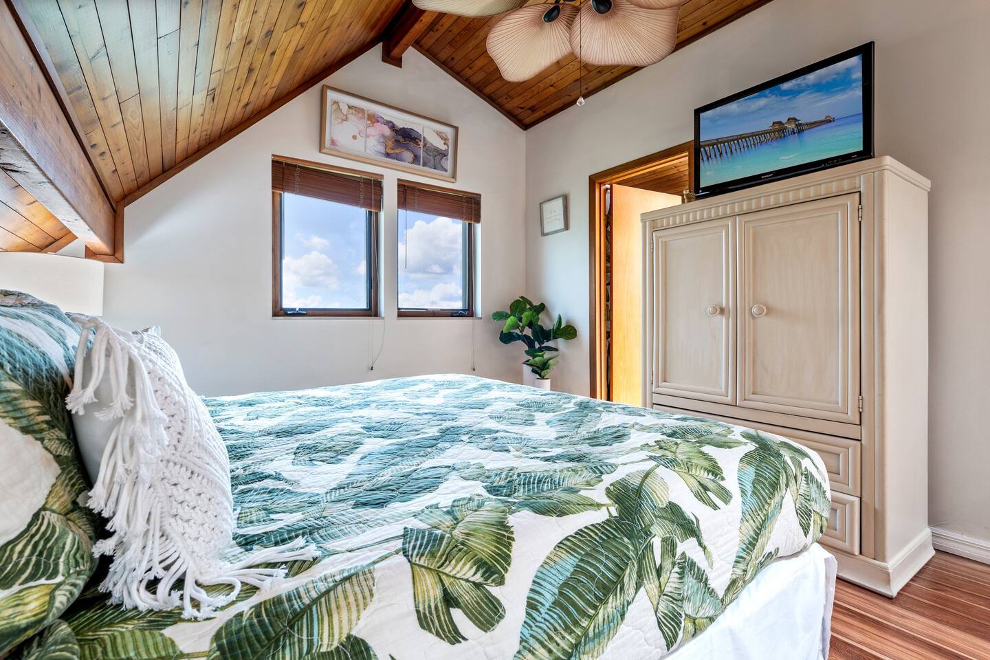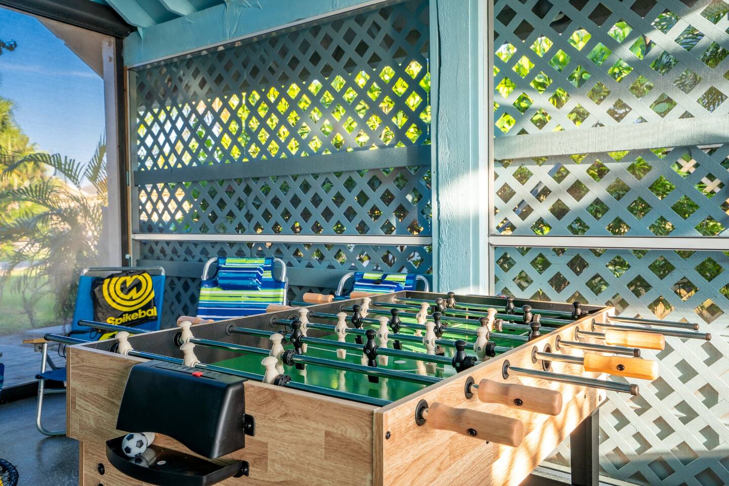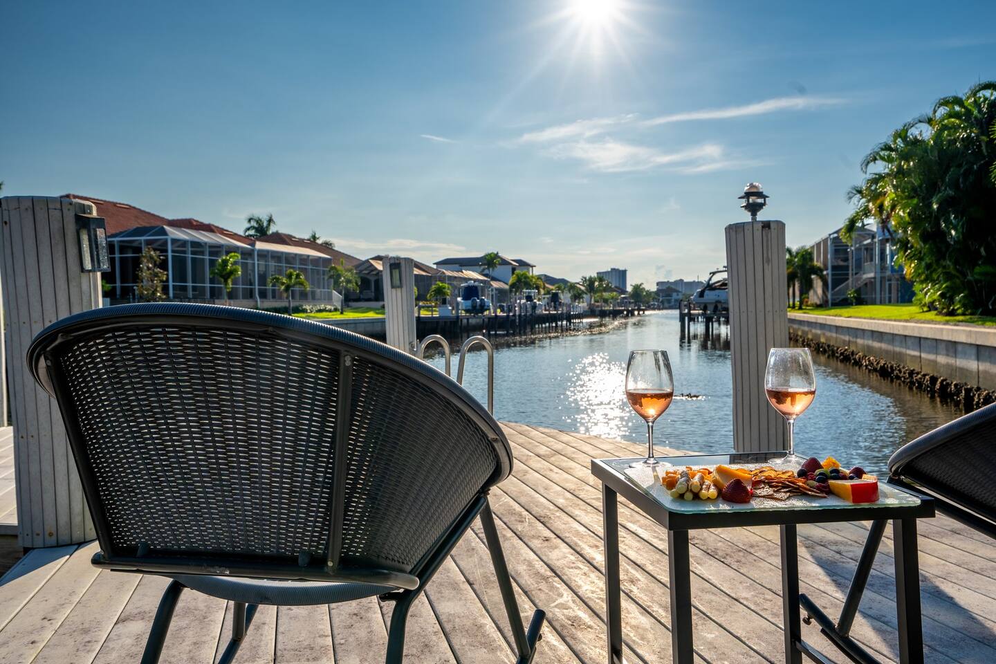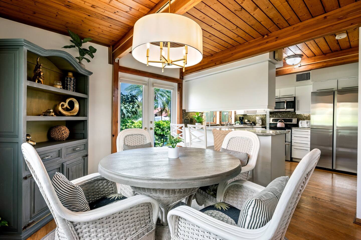 KEY FEATURES: ☀ Waterfront backyard with outdoor patio; Cabana room, 4 sun loungers, and a dock ☀ Sleeps 7; 3 bedrooms, 1 king bed, 1 Queen, 1 Bunk bed (full and twin) ☀ 2 Bathrooms; both with shower and tub options ☀ Modern and well-equipped kitchen with seating for 7 guests ☀ Heated pool (please reach out 3 days in advance to have pool heat turned on) ☀ Bike service available for rent ☀ Plenty of beach chairs and amenities! ☀ Can't beat the location! Close to beaches, shopping, surrounded by great food and plenty of options for local fishing charters, paddle board and kayak rentals, and many other water excursions! ☆☆ BEDROOMS ☆☆ This delightful home comfortably accommodates up to 7 guests across 3 bedrooms, offering plenty of space for a relaxing stay. The master bedroom is a stunning loft layout featuring a king bed for ultimate comfort, along with a private full bath. You'll also find a spacious closet for all your storage needs and a TV for entertainment. The water views from the oversized living room windows are a dream to wake up to. Perfect for anyone looking to unwind in this cozy oasis! The first floor boasts to bedrooms of to the left of the main entrance. The first guest bedroom features a cozy queen bed for a restful night's sleep. This inviting space includes a convenient closet for your storage needs and a TV for your viewing pleasure. You'll also have easy access to a full bathroom just steps away. For our second guest bedroom - this charming bunk room is perfect for both kids and adults! It features a full bed on the bottom and a single bed on top, providing ample sleeping space. There's plenty of storage in the closet for all your belongings, and a TV to keep everyone entertained during downtime. Best of all, the beautiful window offers a stunning view overlooking the pool and nearby water, adding a serene touch to your stay. ☆☆ BATHROOMS ☆☆ Our home offers two full bathrooms for your convenience. The downstairs bathroom features a tub/shower combo, perfect for a quick rinse or a relaxing soak. Upstairs, the master bathroom provides both a tub and a separate shower, ensuring added comfort and privacy for guests. Whether you're staying with family or friends, this layout makes freshening up a breeze! ☆☆ KITCHEN & LOUNGE ☆☆ Enjoy the comfort and convenience of our open-concept kitchen and dining area, perfect for preparing meals and gathering with loved ones. The kitchen is fully equipped with everything you need for cooking, while the dining space offers plenty of room to enjoy meals together. The dining room table has four cozy chairs and an additional three seats are available at the island counter. The kitchen has direct access out to the front patio, where you will find the grill to BBQ. The grill master will be able to get in and out with ease! The living room is a cozy and homey spot to relax, the water views and beautiful rustic interior create a welcoming atmosphere. Plenty of space for everyone to gather around on the couches and enjoy the scenery or watch tv after a fun day in the sun. For added convenience, a laundry area is also available, in the hallway closet right when you walk in, making it easy to keep things fresh during your stay! ☆☆ OUTSIDE SPACE ☆☆ Step outside and immerse yourself in this waterfront paradise! Relax on the dock, complete with chairs and a little table, perfect for enjoying the serene views. Take a dip in the screened-in heated pool, or unwind in the cozy cabana room, equipped with outdoor furniture, a mini fridge, and a TV for entertainment. For added fun, the garage has been transformed into a game room featuring foosball, board games, beach equipment, and a mini basketball hoop. Whether you’re soaking in the sun or enjoying some friendly competition, this outdoor space offers endless enjoyment for guests of all ages! ★☆ Book Today & Let Us Take Care Of You on Marco Island! ☆★